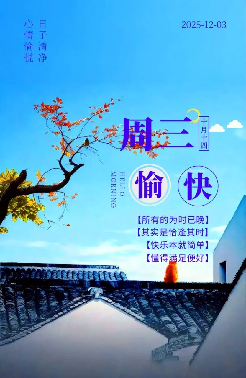今天是2025年12月3日星期三,农历乙巳蛇年十月十四。