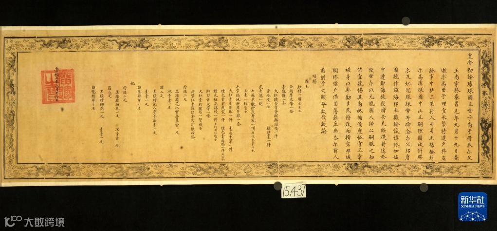 “明谕琉球国王敕”原件(资料照片)。图片来源:新华社。