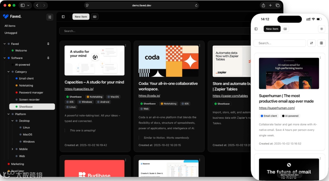 🔗 在线演示:https://demo.faved.dev/