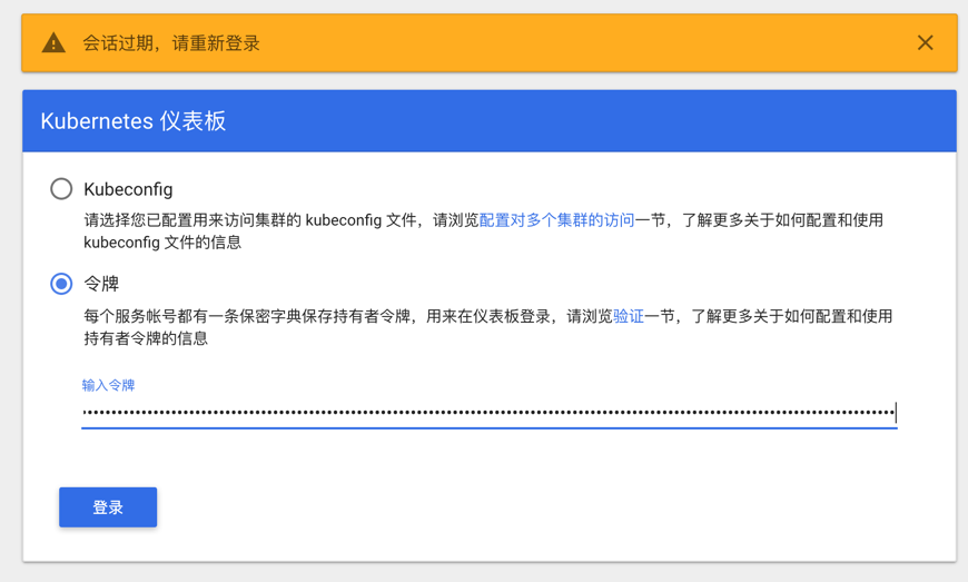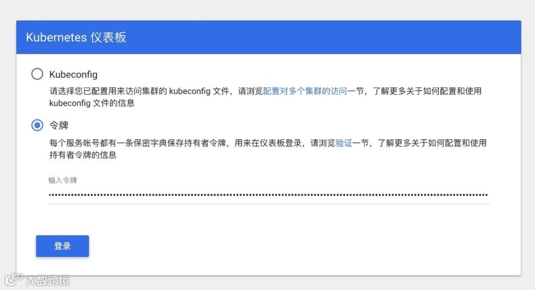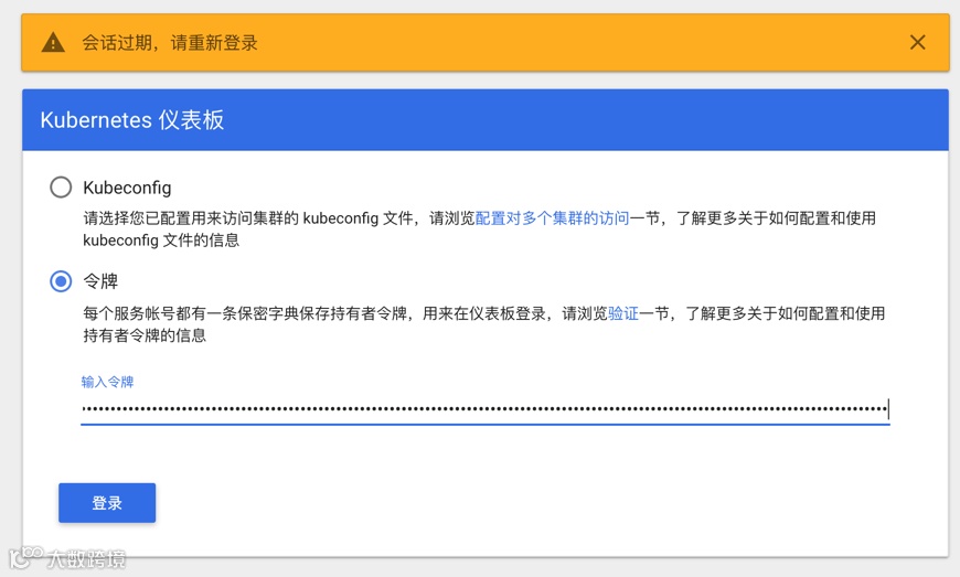接下来我们打开dashboard的地址,将解密后的token复制进去