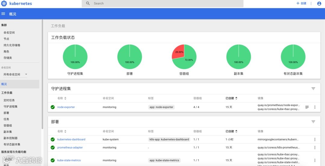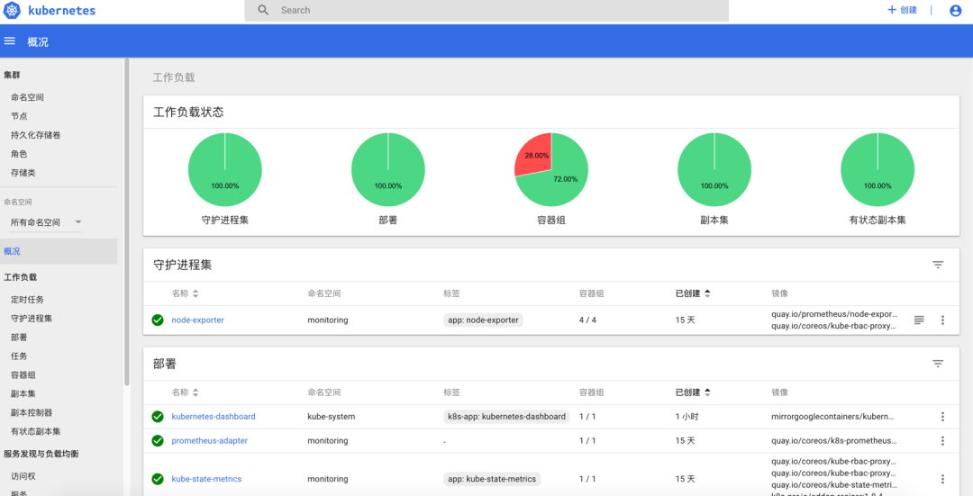 接下来我们使用获取到的token访问dashboard,查看相关权限是否正常 (clusterRoleBinding权限最大,所以说应该所有权限都有)