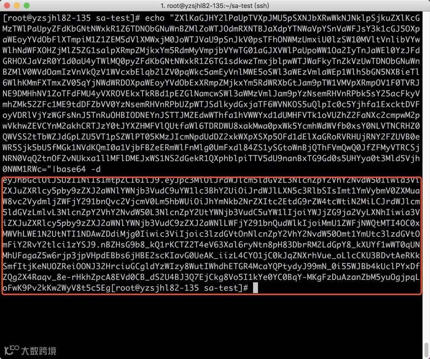 [root@abcdocker sa-test]# kubectl describe sa -n kube-system abcdocker-saName: abcdocker-saNamespace: kube-systemLabels:Annotations: kubectl.kubernetes.io/last-applied-configuration:{"apiVersion":"v1","kind":"ServiceAccount","metadata":{"annotations":{},"name":"abcdocker-sa","namespace":"kube-system"}}Image pull secrets:Mountable secrets: abcdocker-sa-token-qkb7cTokens: abcdocker-sa-token-qkb7cEvents:[root@abcdocker sa-test]# kubectl get secrets -n kube-system abcdocker-sa-token-qkb7c -o yamlapiVersion: v1data:...token: ZXlKaGJHY2lPaUpTVXpJMU5pSXNJbXRwWkNJNklpSjkuZXlKcGMzTWlPaUpyZFdKbGNtNWxkR1Z6TDNObGNuWnBZMlZoWTJOdmRXNTBJaXdpYTNWaVpYSnVaWFJsY3k1cGJ5OXpaWEoyYVdObFlXTmpiM1Z1ZEM5dVlXMWxjM0JoWTJVaU9pSnJkV0psTFhONWMzUmxiU0lzSW10MVltVnlibVYwWlhNdWFXOHZjMlZ5ZG1salpXRmpZMjkxYm5RdmMyVmpjbVYwTG01aGJXVWlPaUpoWW1Oa2IyTnJaWEl0YzJFdGRHOXJaVzR0Y1d0aU4yTWlMQ0pyZFdKbGNtNWxkR1Z6TG1sdkwzTmxjblpwWTJWaFkyTnZkVzUwTDNObGNuWnBZMlV0WVdOamIzVnVkQzV1WVcxbElqb2lZV0pqWkc5amEyVnlMWE5oSWl3aWEzVmlaWEp1WlhSbGN5NXBieTl6WlhKMmFXTmxZV05qYjNWdWRDOXpaWEoyYVdObExXRmpZMjkxYm5RdWRXbGtJam9pTW1VMVpXRmpOV1F0TVRJNE9DMHhNV1ZoTFdFMU4yVXROVEkxTkRBd1pEZGlNamcwSWl3aWMzVmlJam9pYzNsemRHVnRPbk5sY25acFkyVmhZMk52ZFc1ME9tdDFZbVV0YzNsemRHVnRPbUZpWTJSdlkydGxjaTF6WVNKOS5uQlpIc0c5Yjhfa1ExcktDVFoyVDRlVjYzWGFsNnJ5TnRuOHBIODNEYnJSTTJMZEdwWThfa1hVWWYxd1dUMHFVTk1oVUZhZ2FaNXc2cmpwM2pwVkhwZEVCYnM2akhCRTJzY0tJYXZHMFVlQUtfaWl6TDRDWU8xakMwa0pxWk5YcmhWdWVfb0xsY0NLVTNCRHZ0QWVSS2tTbWZJdGpLZU5VT1pSZWlPT05KMzJIcmNpdUdDZ2xkWXpXSXp5OFd1dElXaGRoRVRHUjRNY2FZUVB0eWR5Sjk5bU5fMGk1NVdKQmI0a1VjbFBZeERmWlFnMlg0UmFxdl84ZS1ySGtoWnBjQThFVmQwQ0JfZFMyVTRCSjNRN0VqQ2tnOFZvNUkxa1llMFlDMEJxWS1NS2dGekR1QXphblpiTTV5dU9nanBxTG9Gd0s5UHYya0t3Mld5Vjh0NWM1RWc=...