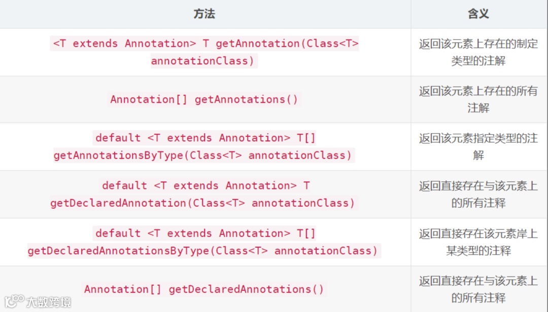 声明格式:元素以“无参数方法”的形式声明,如int count();,不能有参数或throws语句。