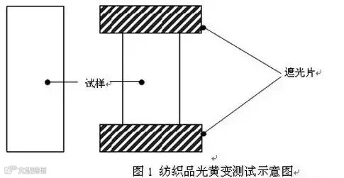 光黄变测试:原理类似于耐光色牢度测试,但光源不同。将试样部分遮盖后置于专用试验箱中,采用太阳灯或紫外灯照射,在控制温湿度条件下进行规定时间曝晒,随后依据GB 250灰色样卡评定变色程度,测试装置示意图见图1[k]。
