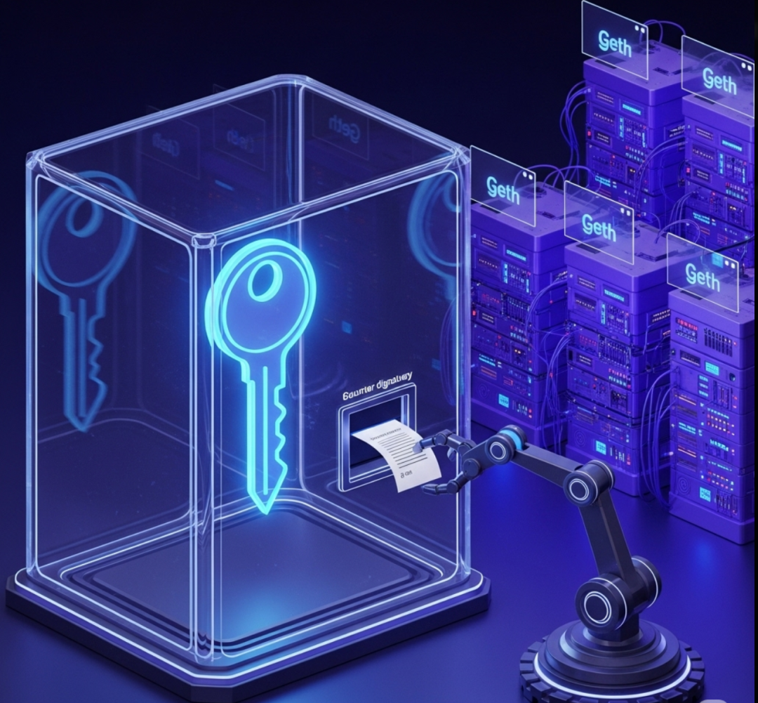 负责处理区块链数据同步、P2P 网络、执行交易等“公共”事务。它不再需要接触任何私钥。 - Clef 签名器