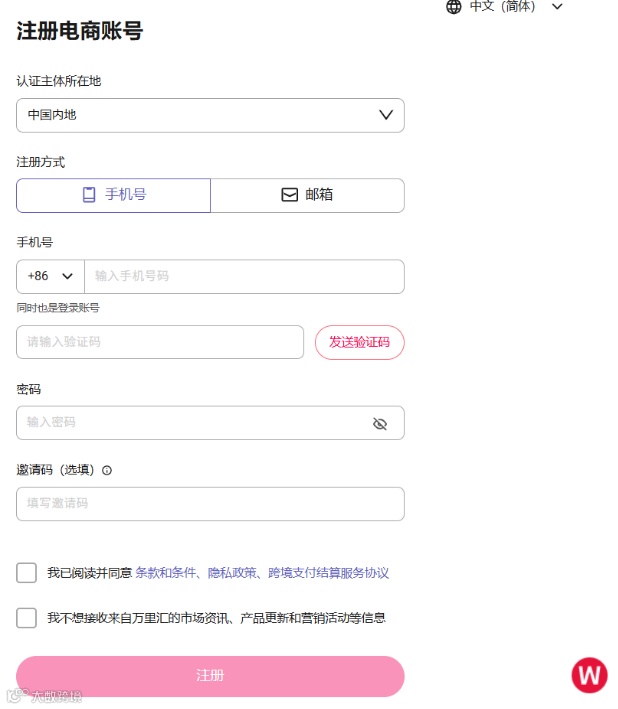 万里汇跨境电商账号注册流程简洁高效,支持手机号或邮箱注册,全程无需复杂操作。