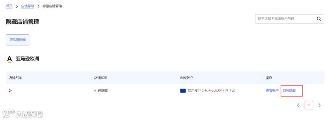 点击【隐藏店铺管理】,选中目标店铺,点击【取消隐藏】。