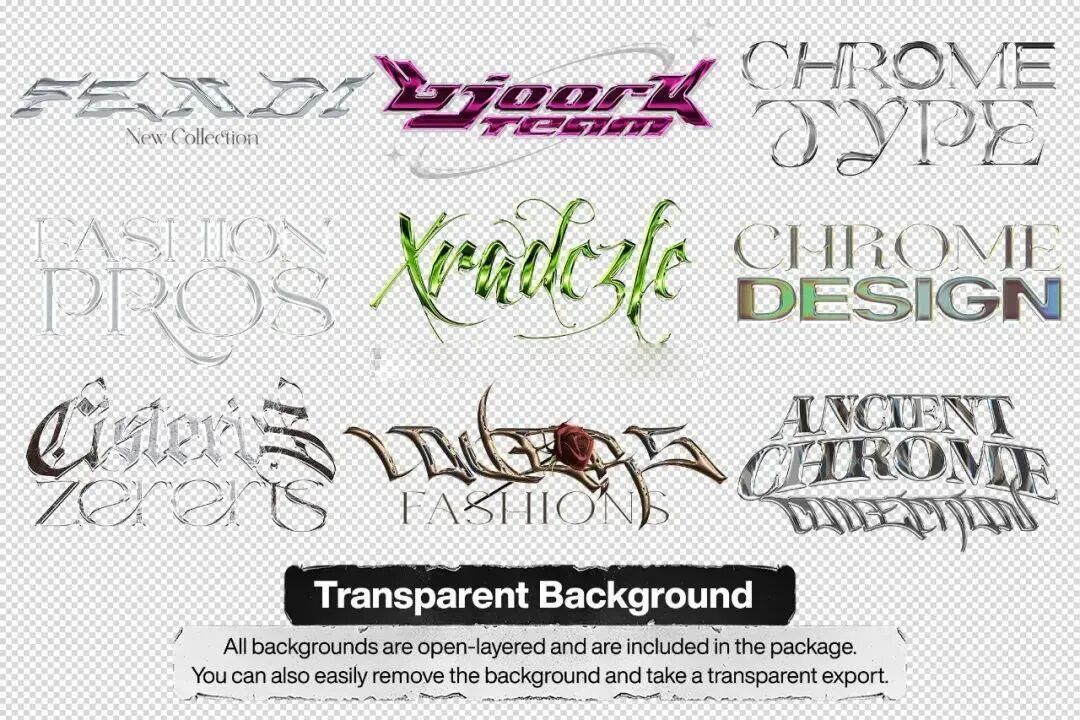 该系列的各种样式均受镀铬设计风格的启发,只需单击一下图层智能对象,即可帮助您将纯文本,徽标或形状转变为杰作。