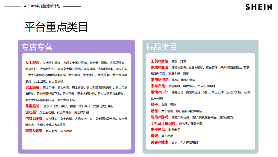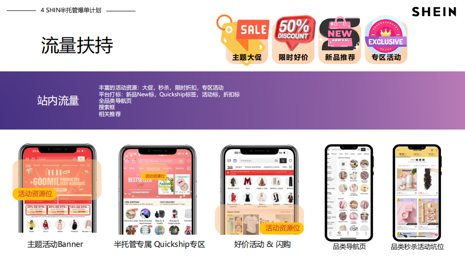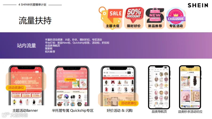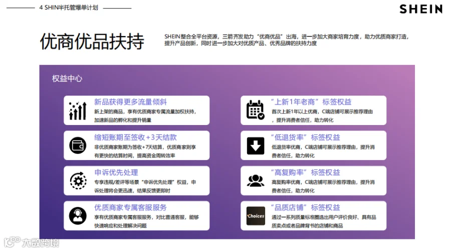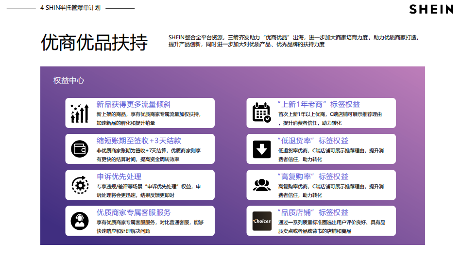 平台强力赋能:SHEIN全球App月活超2.5亿,中东站共享流量;新商家享“冷启动流量包”,日均曝光提升37%,首页Banner、搜索加权等资源助力爆单。