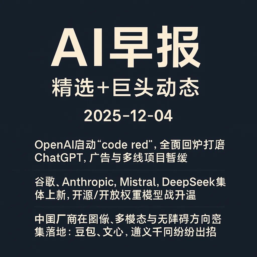· OpenAI 启动 “code red”,全面回炉打磨 ChatGPT,广告与多线项目暂缓