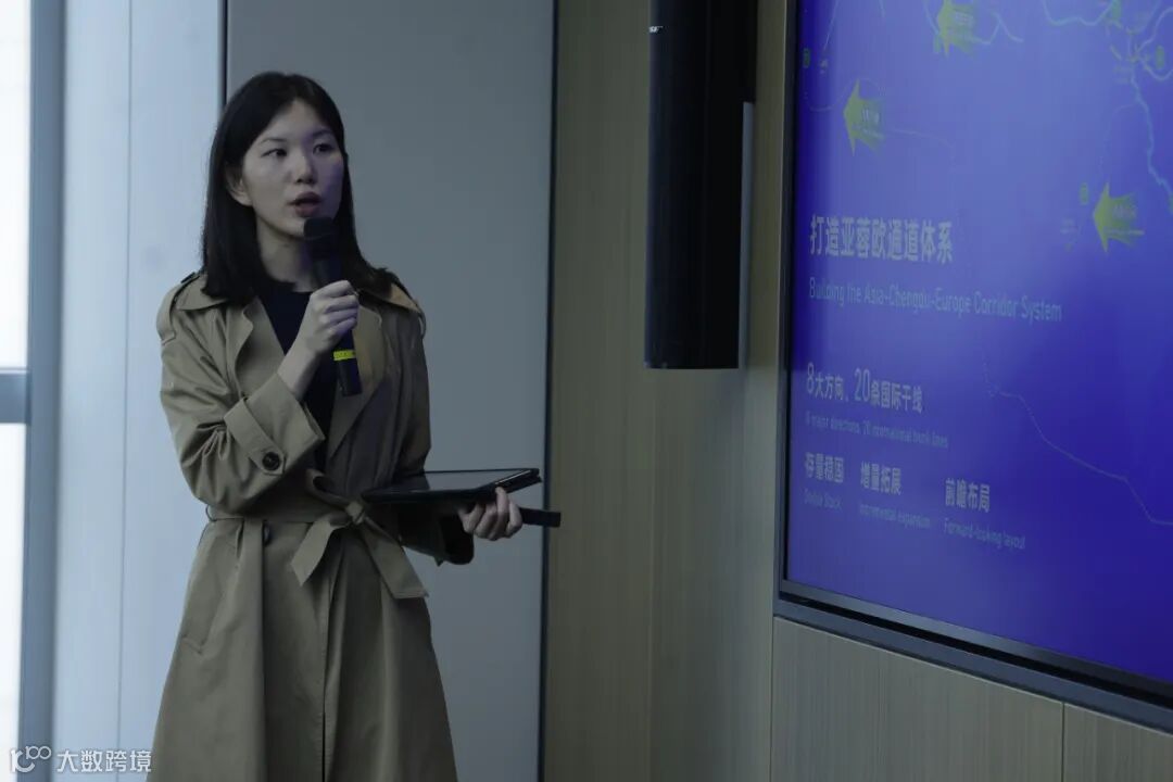 成都市青白江区驻深办副主任霍万秋宇老师作了题为《成都中欧(亚)班列构建亚蓉欧产贸物流大通道》的分享。