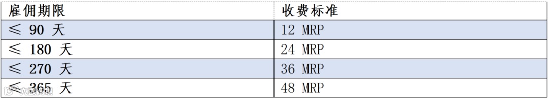 普通(非季节性)外国劳工将按行业和员工类别计费,许可期限越长国家收费费用越高。部分行业收费标准示例如下: