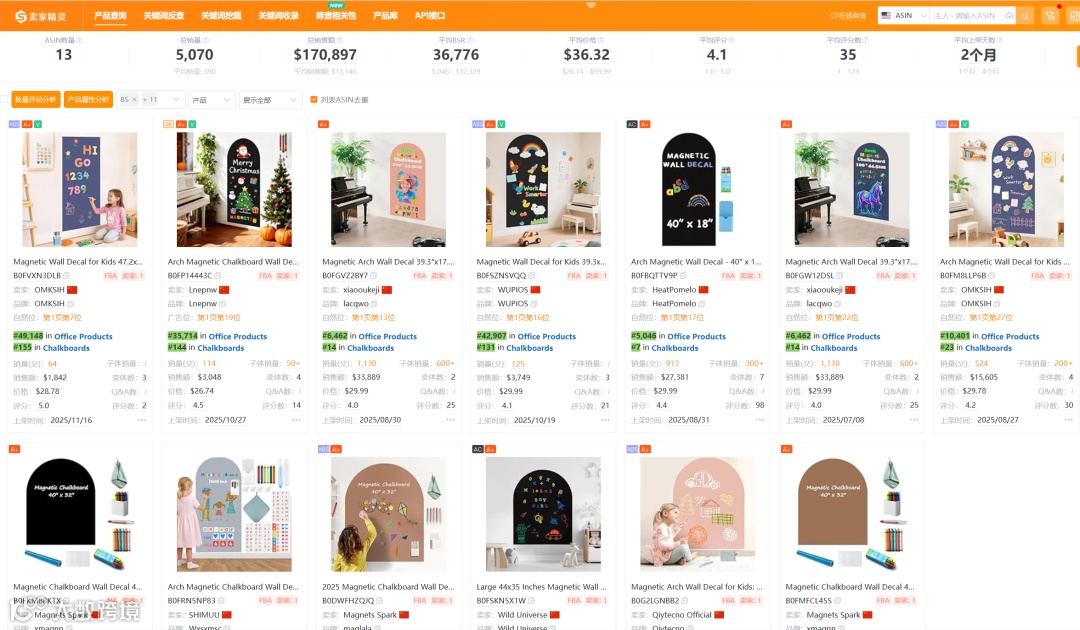 本文基于卖家精灵AI市场洞察工具,对亚马逊美国站“墙面磁性黑板”(magnetic chalkboard for wall)品类进行系统性分析,聚焦市场体量、需求趋势、竞争格局及中小卖家可切入的差异化机会。