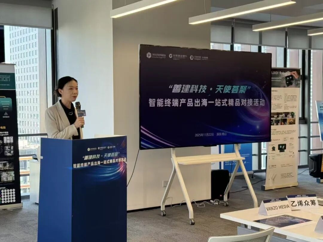 2025年11月22日,由深圳市天使投资引导基金管理有限公司(以下简称“深天使”)、中国建设银行深圳市分行主办,中国建设银行深圳罗湖支行、深圳市北方科创管理有限公司承办,力合科创集团有限公司、深圳乙烯创意传媒有限公司、VANZO MEDIA协办的“善建科技·天使荟聚”智能终端产品出海一站式精品对接活动在深圳模力营AI生态社区成功举办。