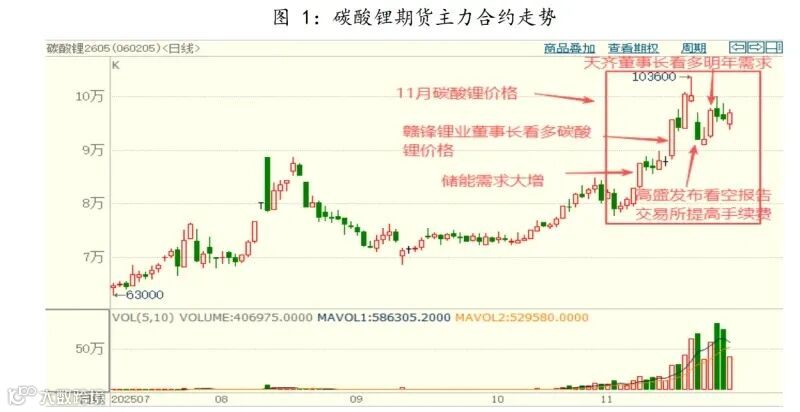 2025年11月,碳酸锂期货价格大幅上涨。在供需双增、市场消息频繁炒作及交易所政策调控多重影响下,价格重心持续上移。