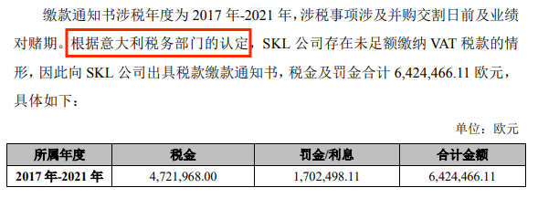 然而,资产交割后,税务问题陆续爆出。2021年3月,星徽股份披露,泽宝海外子公司收到法国税务部门追缴通知书,涉税时间为2015年1月-2019年8月,税款加罚金共计为495.09万欧元。2024年初,公司又陆续披露收到意大利和美国税务部门追缴通知,税款加罚金分别为642.25万欧元、237.84万美元。