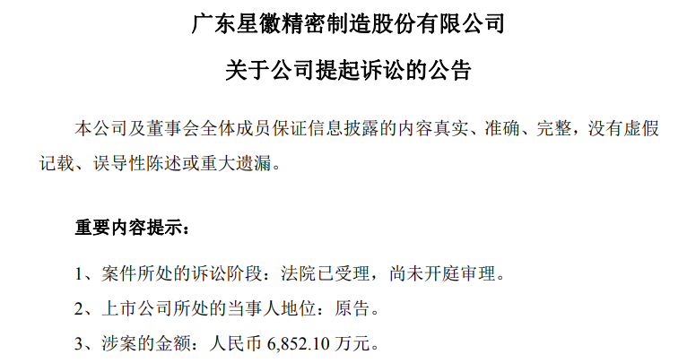 星徽股份起诉泽宝原股东 图源:巨潮资讯