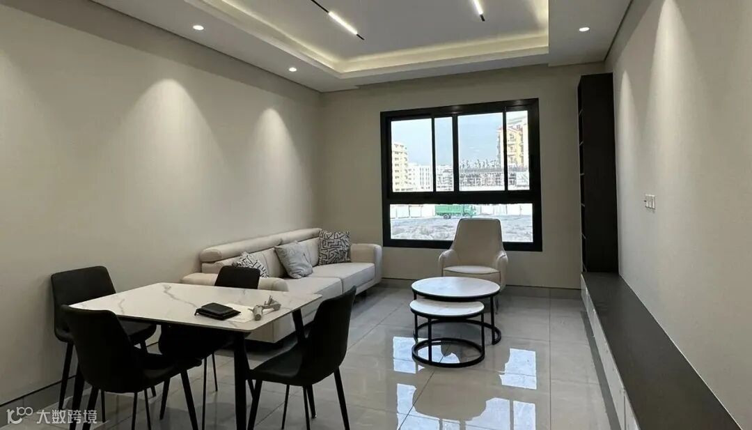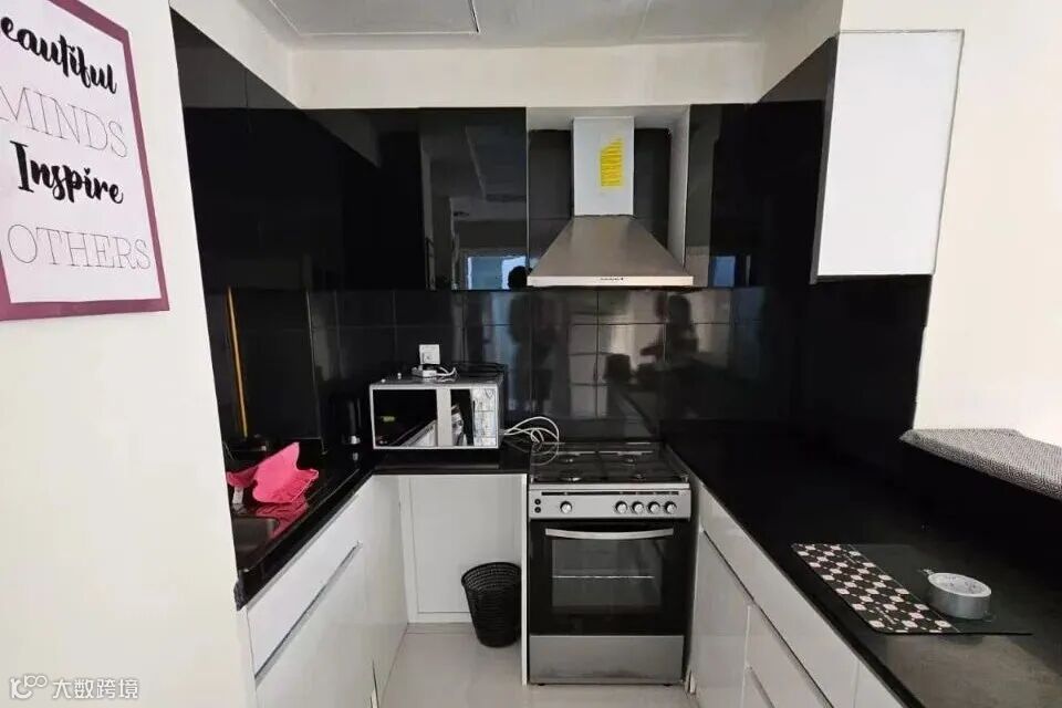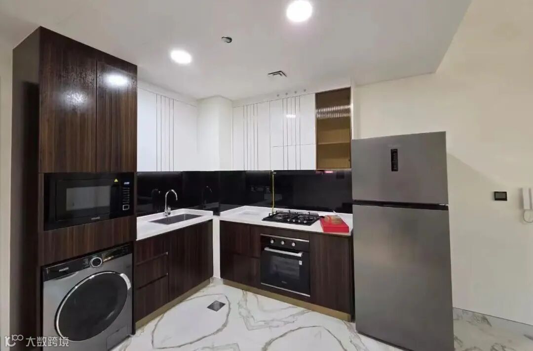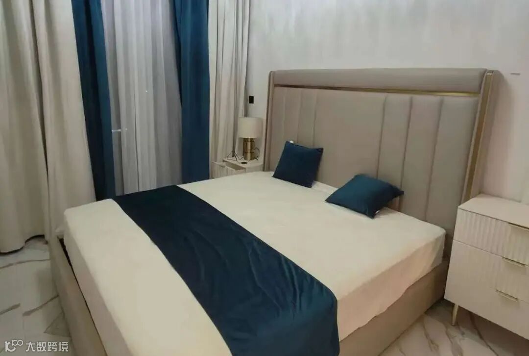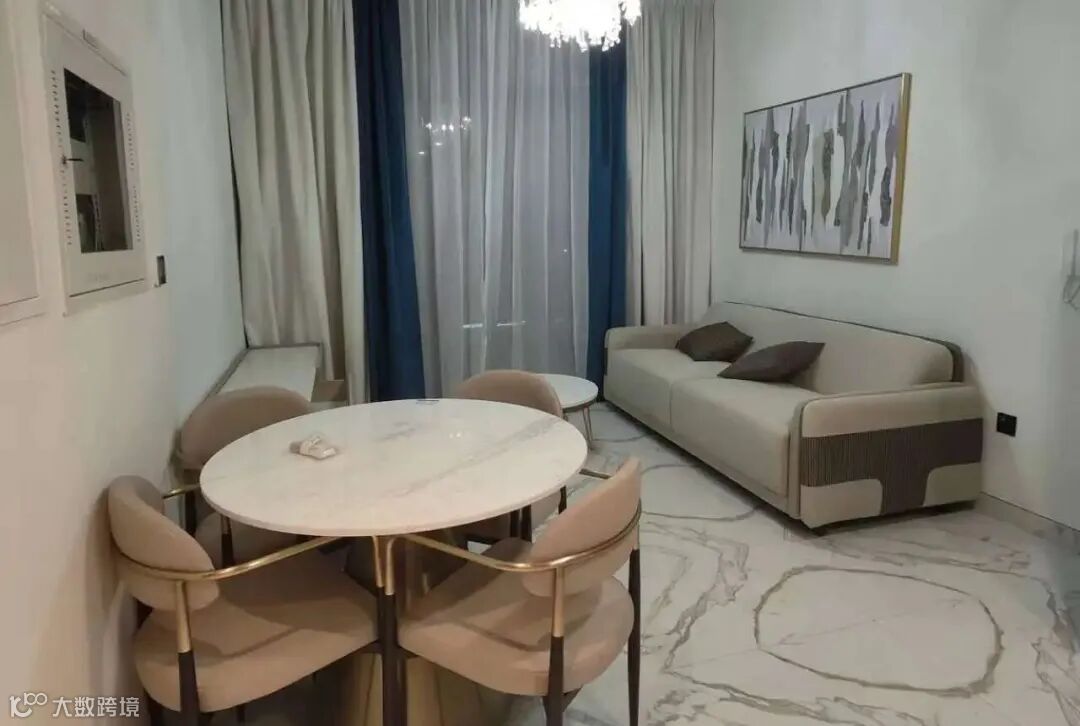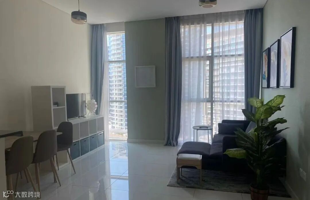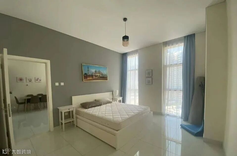 拎包入住,家电齐全;配游泳池、健身房、停车位;押一付一4800迪拉姆/月,押一付三4500迪拉姆/月。