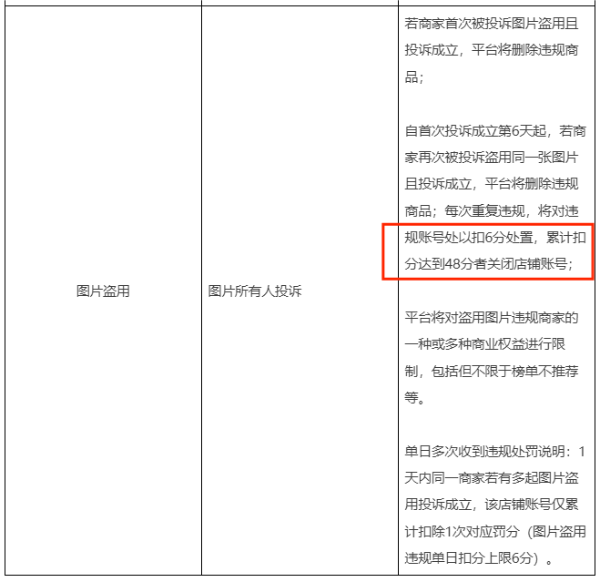 对比更新前的政策,新规显然发出了更为强烈的信号。旧版规则下,卖家被判定盗图后需在规定时间内完成申诉或整改;如未按时完成整改、申诉逾期或失败,相关商品将被删除,店铺将被计15个罚分,且被冻结28天。