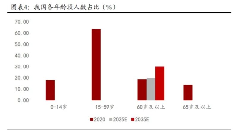 新冠症状有轻有重,亲历感染强化健康意识。2020 年-2023 年的新冠疫情,以及 2023 年疫情放开后的 广泛感染和部分人群的重复感染,使得民众健康意识提升,加之新冠感染被划为自限性疾病,即“发展 到一定程度后能够自动停止并逐渐恢复,靠自身免疫就可能痊愈的疾病”,民众对免疫提升的健康需求 将更加真切。此外,各类社交平台上各类人群症状不一,免疫力强的症状普遍轻微,再次深化群众健康 意识。 老龄化趋势加剧,预计我国 2035 年进入重度老龄社会。依据联合国相关标准,一般把 60 岁及以上的 人口占总人口比重达到 10%,或 65 岁及以上的人口占总人口的比重达到 7%作为老龄化社会的标准。 2020 年第七次全国人口普查数据显示,我国 60 岁及以上人群占比为 18.70%,65 岁及以上人群占比为 13.50%,老龄化问题较为严重。而根据国家卫健委老龄司的测算,预计 2035 年左右,我国 60 岁及以 上老年人口占比将超过 30%,进入重度老龄化阶段。