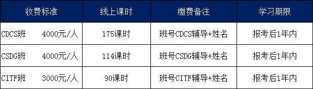 天九湾的CDCS、CSDG报班费4000元,CITF报班费3000元,CSCF报班费3500元,而补考费4000元+补考准备时间6个月+证书取得时间滞后6个月,还是报班助力一次通过划算,正所谓一鼓作气,再而衰,三而竭。