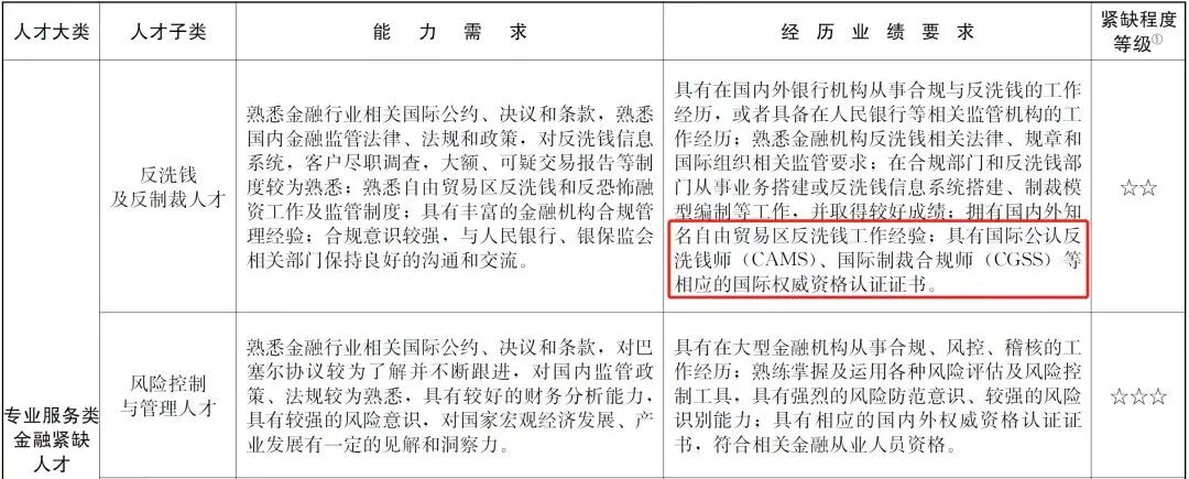 反洗钱与国际制裁合规工作真的是一项比较专业、需要不断学习累积的工作,当下反洗钱及反制裁人才能力需求:熟悉金融行业相关国际公约、决议和条款,熟悉国内金融监管法律、法规和政策,对反洗钱信息系统,客户尽职调查,大额、可疑交易报告等制度较为熟悉;熟悉自由贸易区反洗钱和反恐怖融资工作及监管制度;具有丰富的金融机构合规管理经验;合规意识较强,与人民银行、金融监管局相关部门保持良好的沟通和交流。有关国际公认反洗钱师(CAMS)、国际制裁合规师(CGSS)专项学习与持证人资讯交流可添加天九湾18917870216(微信同号)。