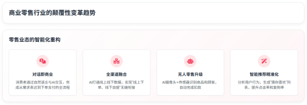 全渠道融合的加速推进:AI 打通线上线下数据,实现 "线上下单、线下自提" 无缝衔接,某零售集团全渠道订单占比已提升至 60%(145)。ChatGPT 的介入将进一步加速这种融合,消费者可以在任何时间、任何地点通过 AI 完成购物,而不必局限于特定的渠道。