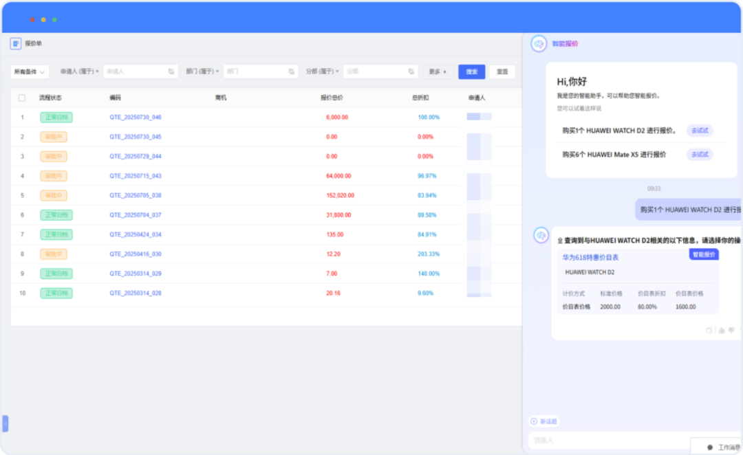 助力企业敏捷捕捉市场动态、快速调整报价策略,同时以精准报价增强客户合作意愿,提升订单成交概率。报价过程中沉淀的数据分析结果,为企业业务战略决策(如定价调整)与成本精细化控制提供客观数据依据。