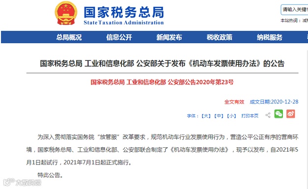 2. 机动车销售统一发票:2021年7月1日起启用新版发票,自动标注“机动车”标识,每辆车仅可开具一张蓝字发票[k]。