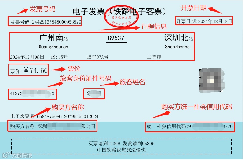 - 火车票与飞机票的抵扣、税前扣除及报销,必须在票面显示单位名称和“统一社会信用代码”,仅凭旅客实名信息已不可计算抵扣;[k]