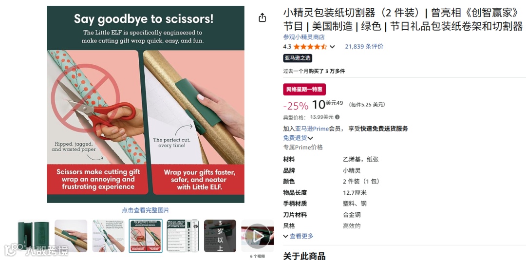 由斯坦福大学生 Perla Atman 创立的包装纸切割器,近期在亚马逊销量已突破三万件,自上线以来长期位居平台畅销榜。