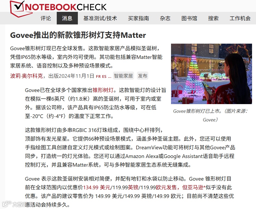 早在2024年新品上市初期,Govee 就通过知名科技博客 NoteBook Check 发布软文,为产品热度奠定基础。