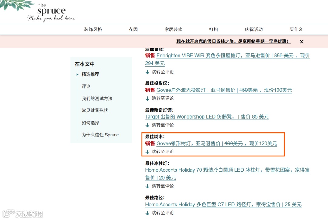 今年圣诞预热期,消费指南博客 VGroup 率先发布测评,称其为“打造室内外梦幻圣诞装饰的完美选择”;顶级家居博客 The Spruce 也在10款圣诞灯测评中将其评为“最佳树木灯”,第三方背书效果显著。