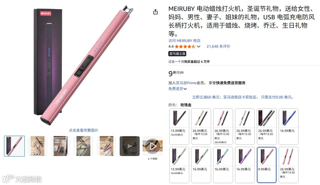 点燃蜡烛是海外圣诞传统之一。在此背景下,国产专业点火品牌 Meiruby 推出的蜡烛打火机,在亚马逊月销已达4万件,稳居畅销榜。
