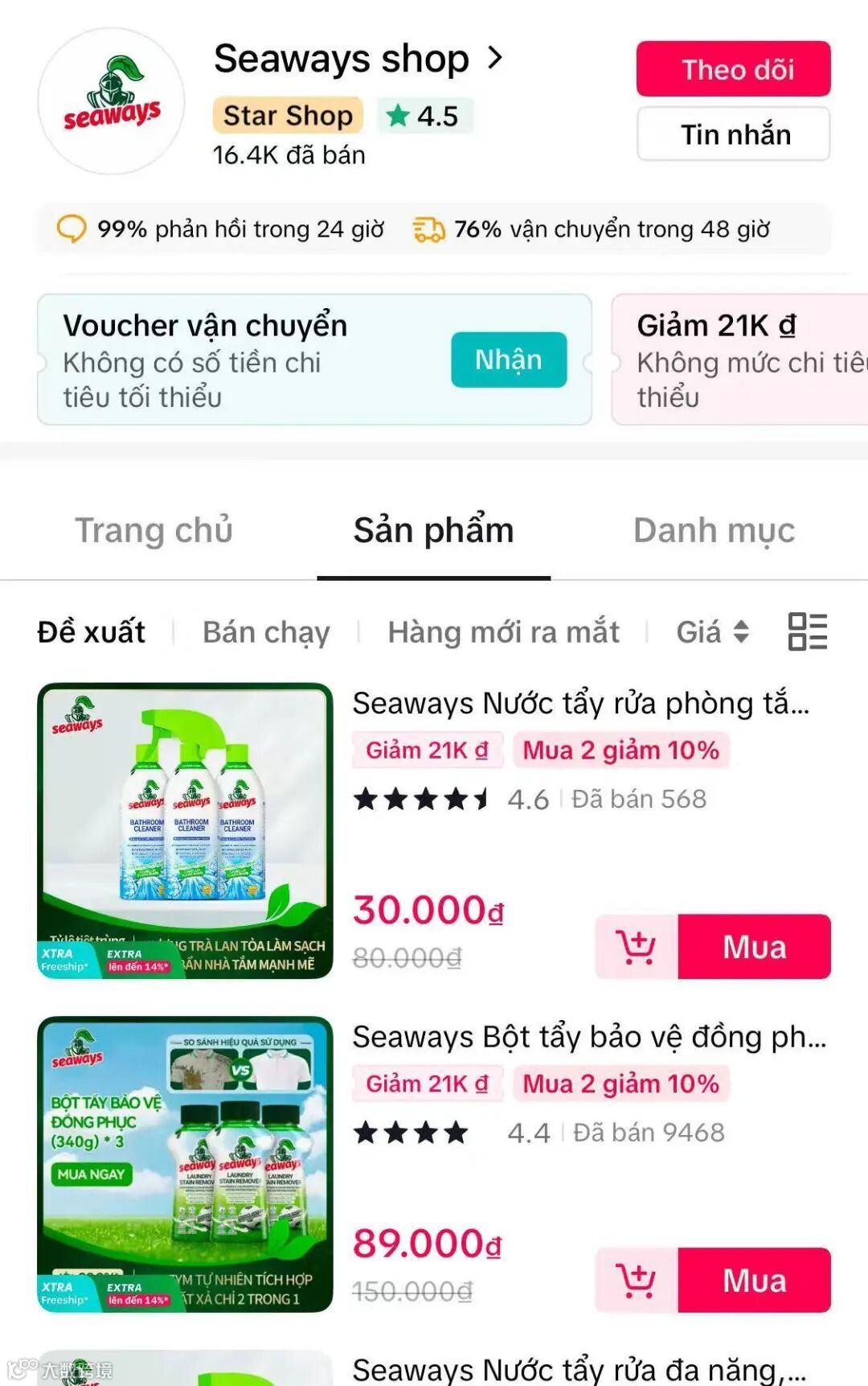 seaways越南官方店铺针对越南市场的主打产品(图源:TikTok)