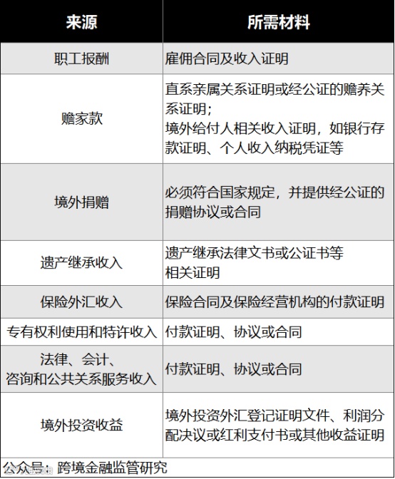 境外个人境内合法人民币收入购汇,需提供有效身份证件、有交易额的购汇资金来源材料(含税务凭证)。