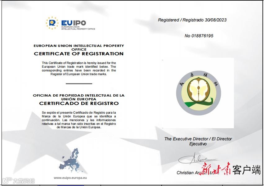 图 | 欧盟商标注册证书,象征品牌知识产权保护