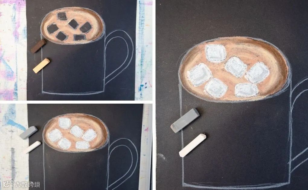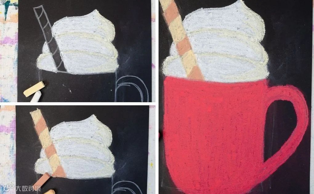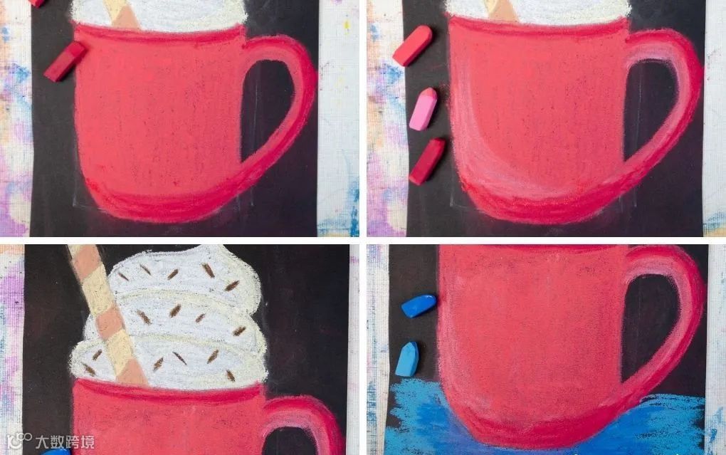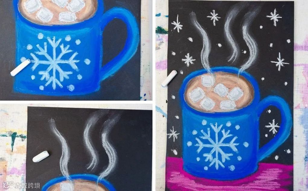 以上创作均基于相似的底层技法:轮廓遮挡+粉笔晕染。掌握核心原理后,可自由发挥,拓展更多图形与主题,提升动手能力与艺术审美[k]。