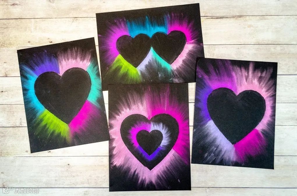网上下载并打印爱心模板,剪下后置于黑卡纸上作为轮廓。在爱心周围涂抹喜欢的粉笔颜色,并用手指将色彩由内向外晕染开,形成渐变效果。掌握基础技法后,可尝试绘制双心或嵌套爱心,提升作品层次感,增添情感表达[k]。