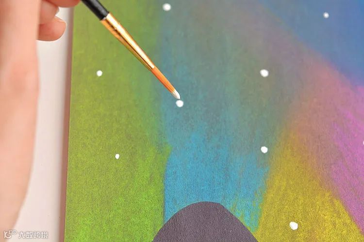使用铅笔在黑卡纸上轻轻画出烟花绽放的放射线条,再选用多种颜色的粉笔沿线条涂抹,并用手指将色彩扩散,形成绚丽的爆炸效果。最后可用白色颜料笔点缀星光,增强节日气氛。该技法简单易学,适合初学者尝试[k]。