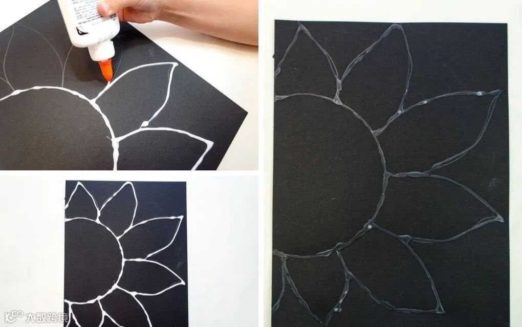 准备黑卡纸、粉笔、白乳胶和白色彩铅。先用白色彩铅勾勒出郁金香的花形,再沿线条涂上白乳胶,随后用粉笔为花朵上色。胶水区域能更好地吸附粉笔颗粒,增强立体感。完成后的作品可用于墙面装饰,极具艺术氛围[k]。