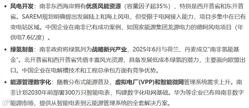 除光伏和储能外,南非新能源市场还有多个潜力领域值得战略布局: