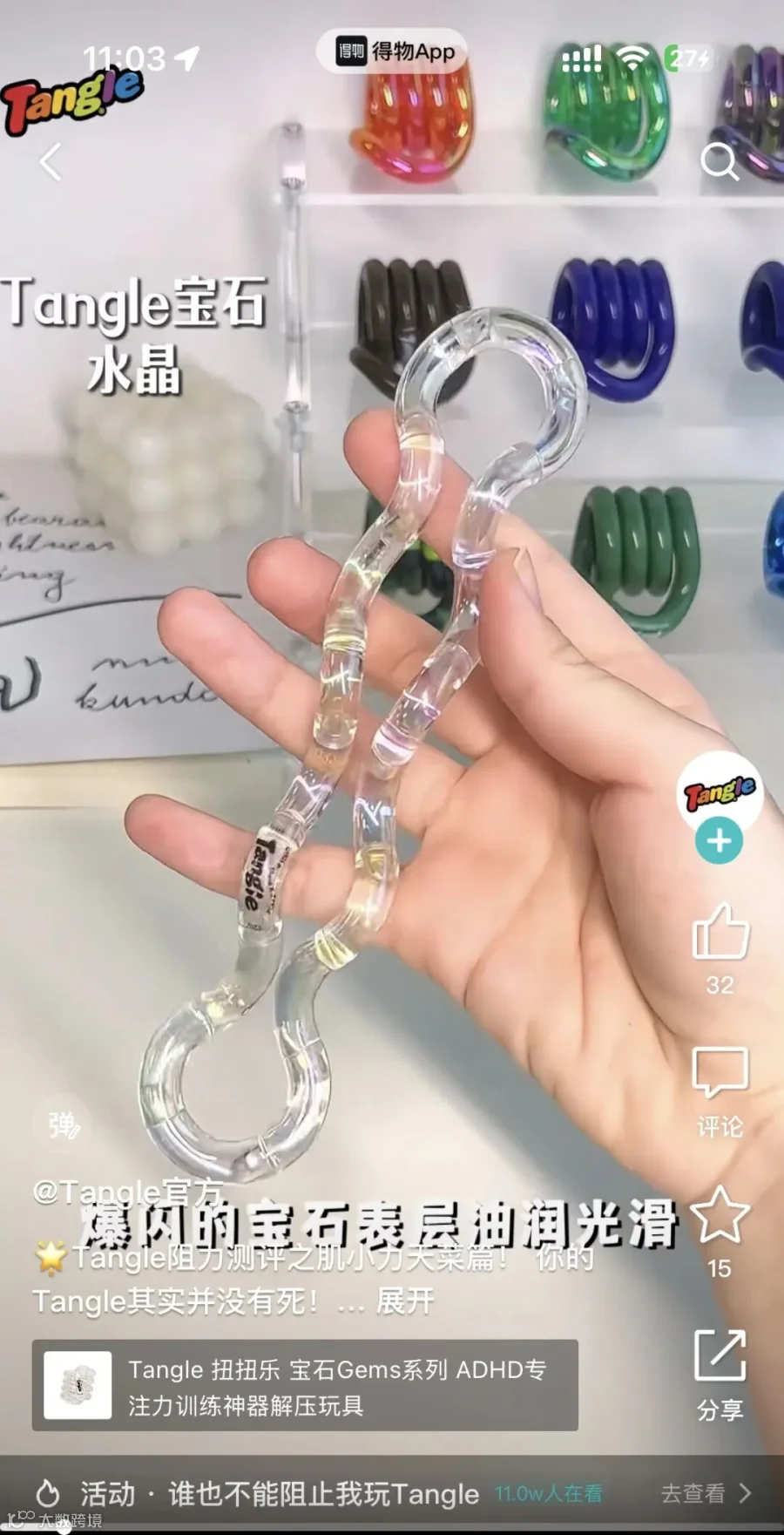 在得物社区,Tangle相关分享帖热度飙升,多次登上热搜。“拿到手就停不下来”,这是大多数Tangle玩家的共同体验。设计师在等待渲染时扭动它,文案在构思时把玩它,程序员在代码编译时摆弄它。