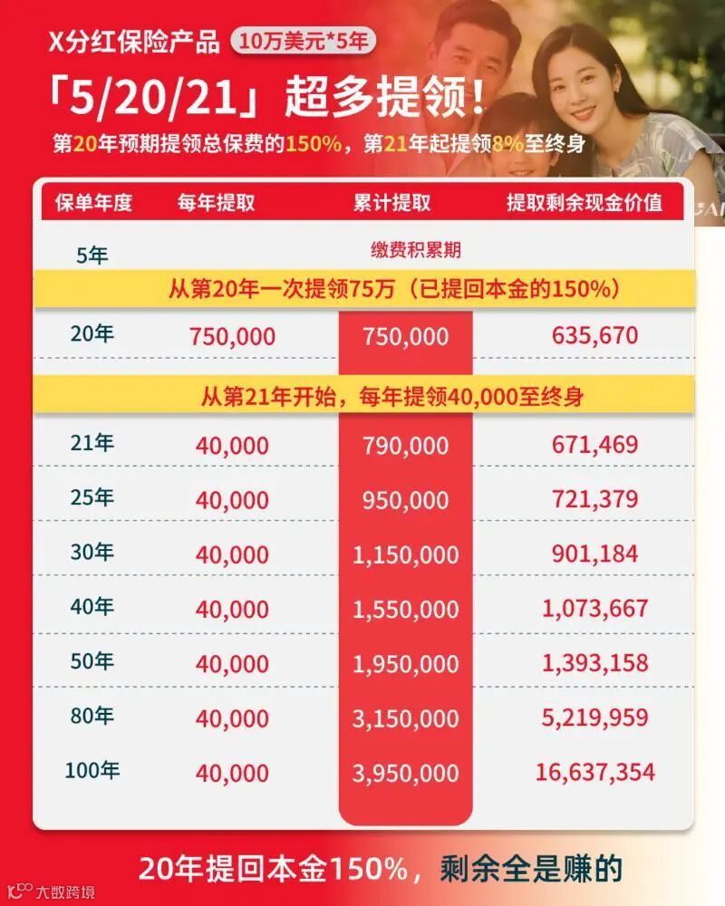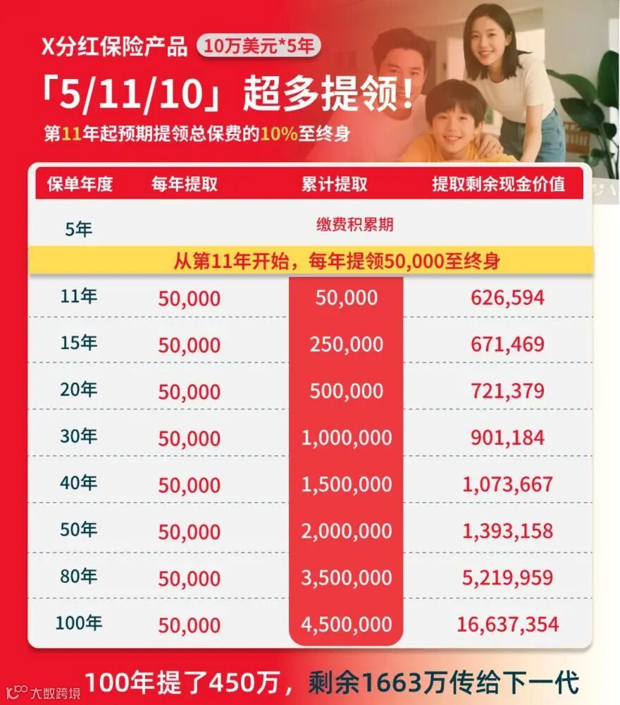 此类产品核心特点是现金价值与分红部分可灵活支取。通过科学规划提款节奏,客户既可实现终身持续领取,又可确保剩余账户价值继续复利增值。
