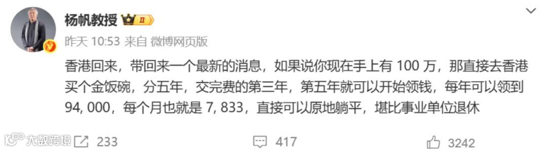 中国政法大学认证教授杨帆近日在社交媒体公开表示,香港保险产品具备显著优势,尤其以储蓄分红险为代表,正成为高净值人群资产配置的重要选项。