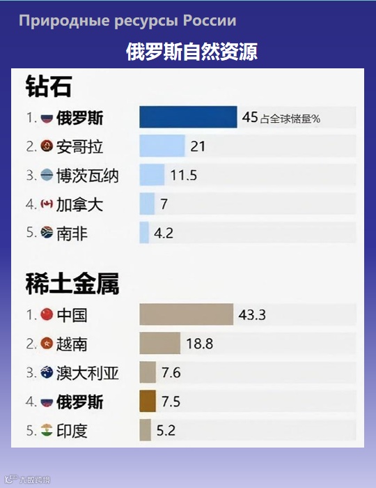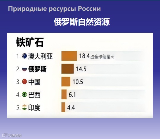 济南丝绸之路经贸合作园俄罗斯是全球矿产资源最丰富的国家之一,国土面积辽阔,地质构造多样,已探明铁矿、金刚石储量居世界第一,铝矿、钼矿等关键矿产储量亦位列全球前列。其已开采矿物覆盖元素周期表全部元素,探明矿产总储量占全球37%,位居全球首位。依托雄厚资源基础,采矿业已成为俄罗斯国民经济的主导产业。