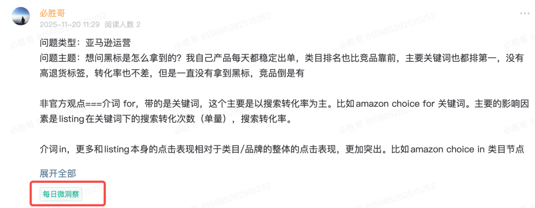 VAE:在论坛、社群、日常交流中累计回复 1 万+亚马逊问题,沉淀出近数十万字的知识库。 必胜哥:几年间累计回复 1 万+问题,发布亚马逊文章 1000+ 篇。