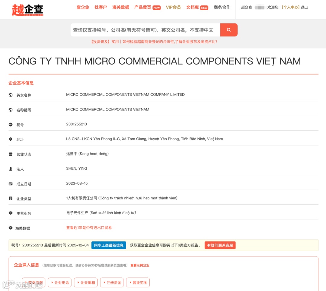 位于北宁省的越南MICRO COMMERCIAL COMPONENTS有限公司(MCC Vietnam)的Micro Components半导体设备工厂项目由扬州扬杰电子科技股份有限公司投资建设。
