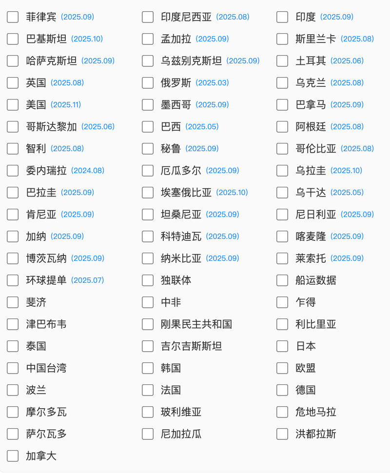 *PS:每个国家/地区后面的日期代表数据源最新的更新日期。