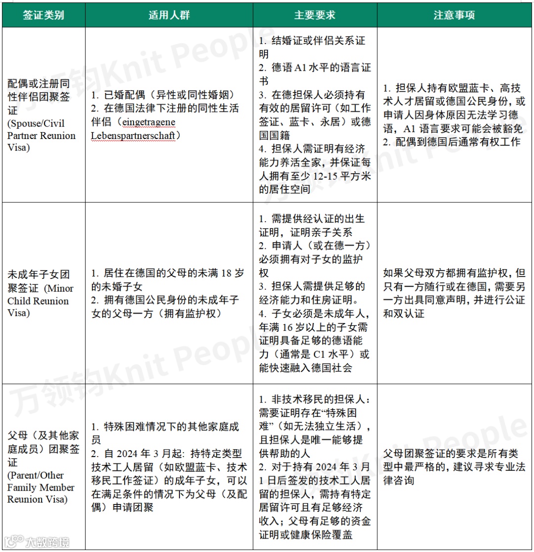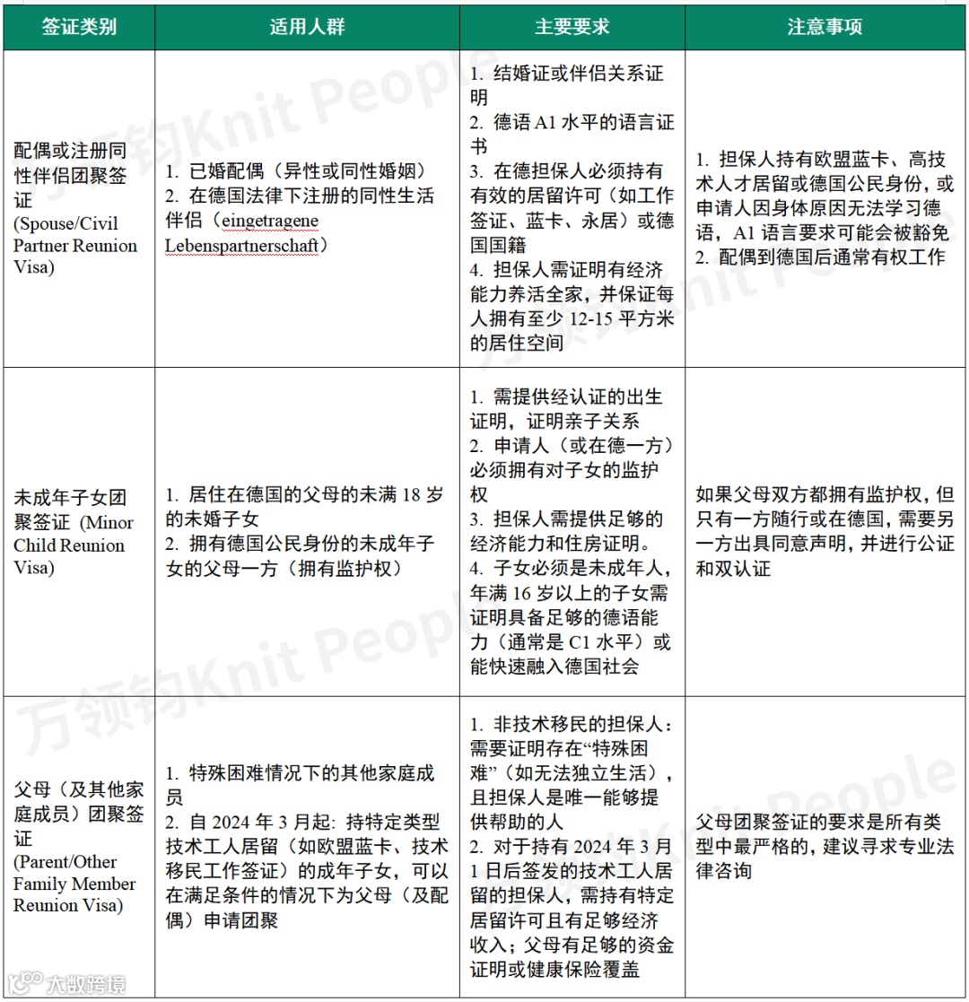 德国政府支持家庭成员在德国共同生活。不同类型的家属签证适用于不同的家庭关系,具体要求取决于在德国居住的“担保人”的身份(例如,是德国公民、欧盟公民还是持有德国居留许可的外国人)。